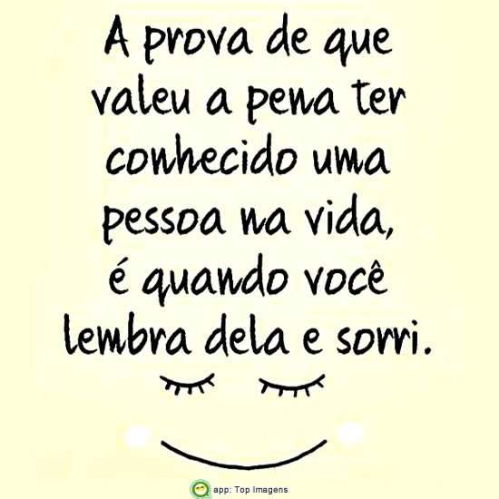 A prova de que valeu a pena ter conhecido uma pessoa na vida, é quando você lembra dela e sorri.