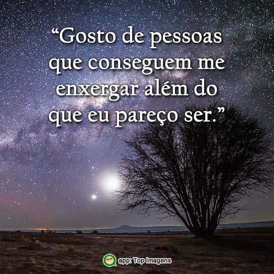 Gosto de pessoas que conseguem me enxergar além do que eu pareço ser.