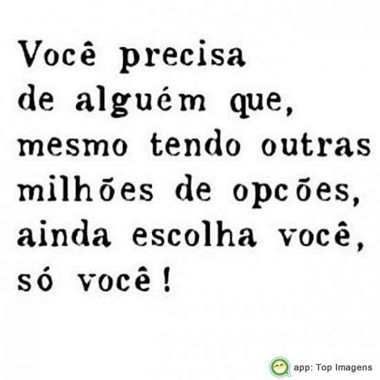 Você precisa de alguém que, mesmo tendo outras milhões de opções, ainda escolha você, só você!