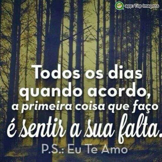 Todos os dias quando acordo, a primeira coisa que faço é sentir a sua falta. P.s.: Eu te amo