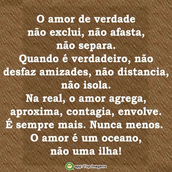 Quando é verdadeiro, não desfaz amizades, não distancia, não isola.