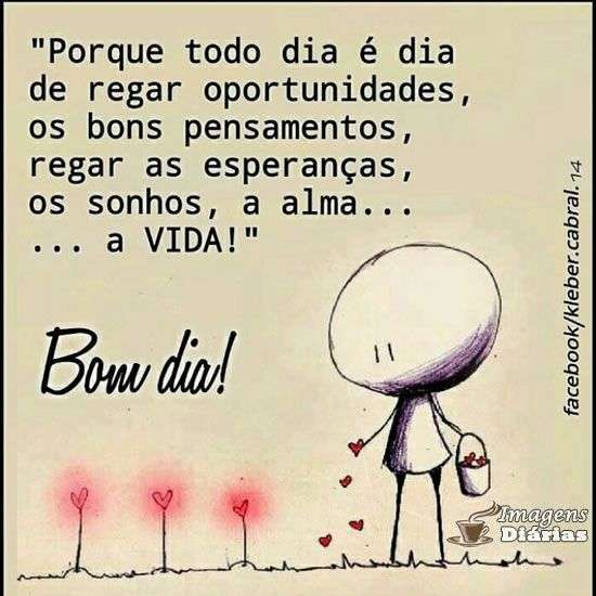 "Porque todo dia é dia de regar oportunidades, os bons pensamentos, regar as esperanças, os sonhos, a alma...