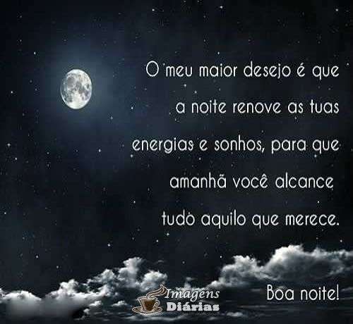 O meu maior desejo é que a noite renove as tuas energias e sonhos, para que amanhã você alcance tudo aquilo que merece.