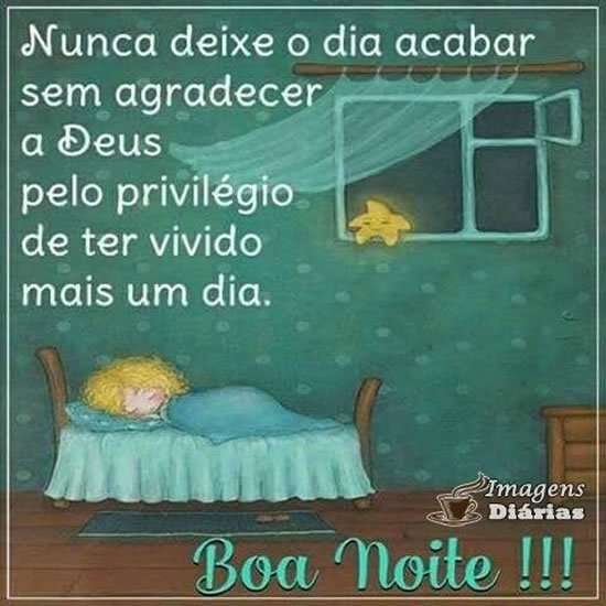 Nunca deixe o dia acabar sem agradecer a Deus pelo privilégio de ter vivido mais um dia. Boa noite!