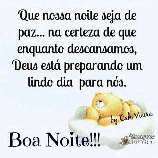 Que nossa noite seja de paz...na certeza de que enquanto descansamos, Deus está preparando um lindo dia para nós.