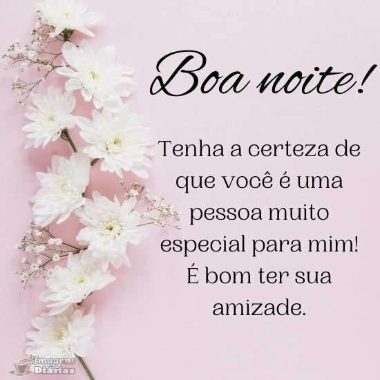 Boa noite! Tenha a certeza de que você é uma pessoa muito especial para mim! É bom ter sua amizade.