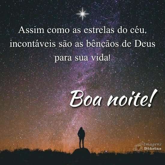 Boa noite! Assim como as estrelas do céu, incontáveis são as bênçãos de Deus para sua vida!
