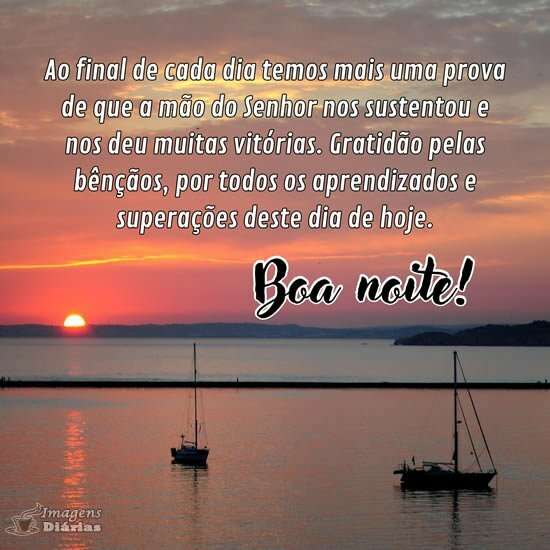 Ao final de cada dia temos mais uma prova de que a mão do Senhor nos sustentou e nos deu muitas vitórias. Gratidão pelas bênçãos, por todos os aprendizados e superações deste dia de hoje