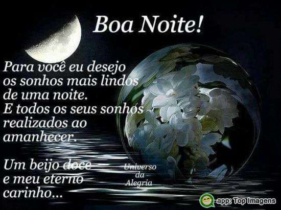 Para você eu desejo os sonhos mais lindos de uma noite.