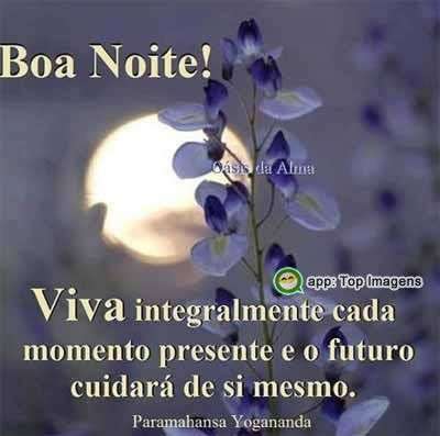 Boa noite! Viva integralmente cada momento presente e o futuro cuidará de si mesmo.