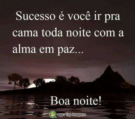 Sucesso é você ir pra cama toda noite com a alma em paz... Boa noite!