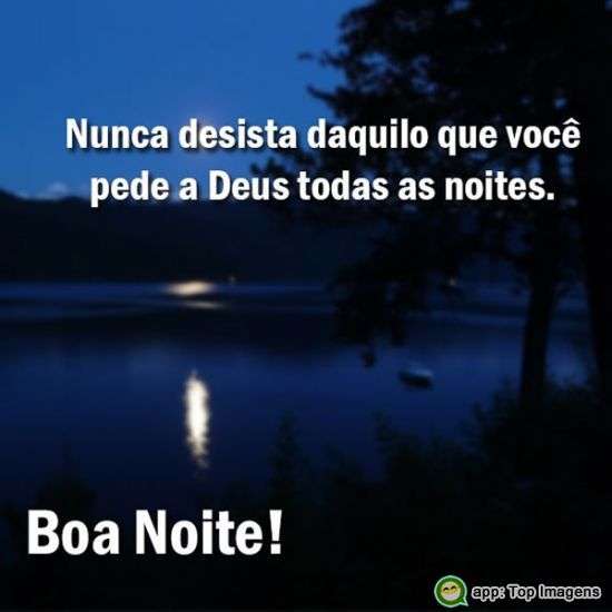Nunca desista daquilo que você pede a Deus todas as noites. Boa noite!