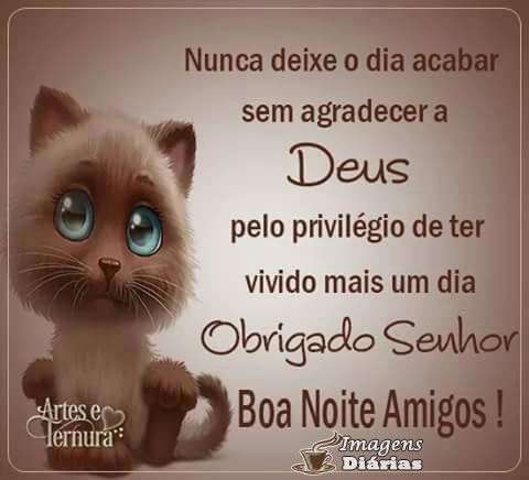 Nunca deixe o dia acabar sem agradecer a Deus pelo privilégio de ter vivido mais um dia
