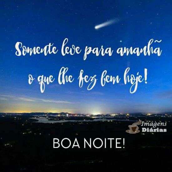 Somente leve para amanhã o que que lhe fez bem hoje! Boa noite!