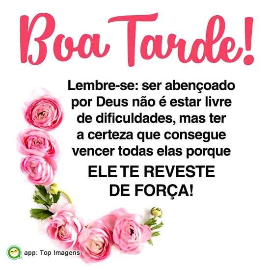 Lembre-se: ser abençoado por Deus não e estar livre de dificuldades, mas ter a certeza que consegue vencer todas elas porque ele te reveste de força!