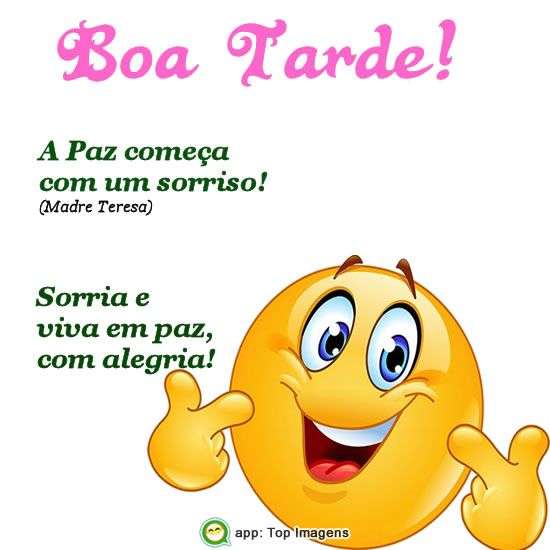 Boa tarde! A paz começa com uma sorriso! (Madre Teresa) Sorria e viva em paz, com alegria!