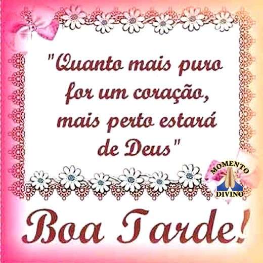 Quanto mais puro for o coração, mais perto estará de Deus. Boa tarde!