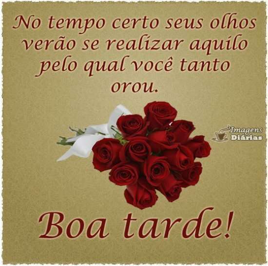 No tempo certo seus olhos verão se realizar aquilo pelo qual você tanto orou. Boa tarde!