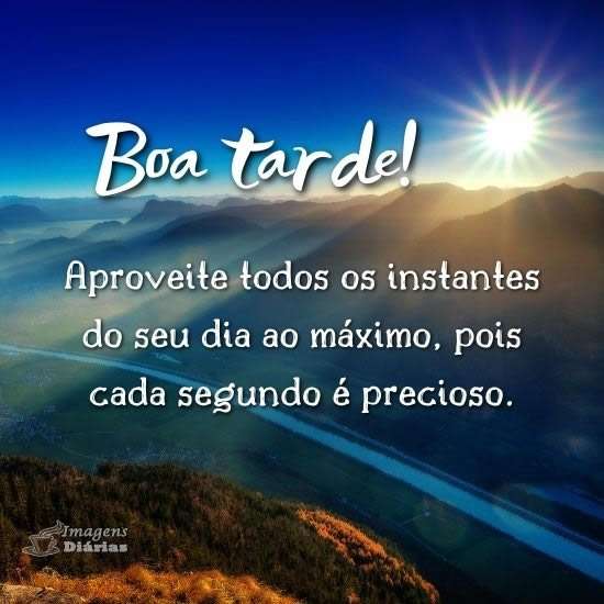 Boa tarde! Aproveite todos os instantes do seu dia ao máximo, pois cada segundo é precioso.