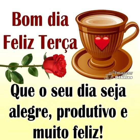 Bom dia! Feliz Terça! Que o seu dia seja alegre, produtivo e muito feliz!