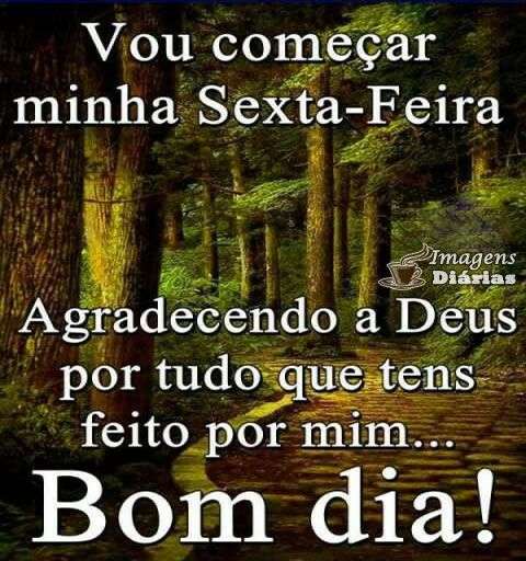 Vou começar minha sexta-feira agradecendo a Deus por tudo que tens feito por mim... Bom dia!