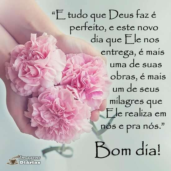 "E tudo que Deus faz é perfeito, e este novo dia que Ele nos entrega, é mais uma de suas obras, é mais um de seus milagres que Ele realiza em nós e pra nós."