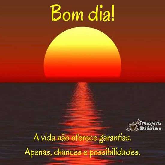 Bom dia! A vida não oferece garantias, apenas, chances e possibilidades.