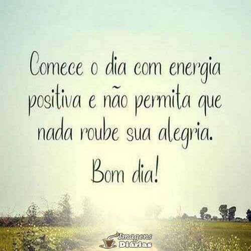 Comece o dia com energia positiva e não permita que nada roube sua alegria. Bom dia!