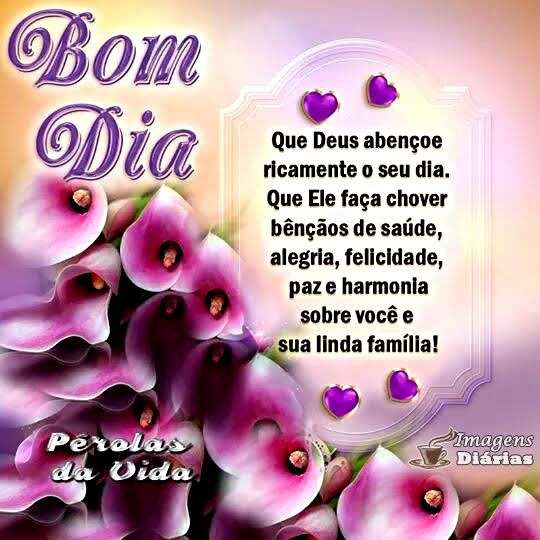 Que Deus abençoe ricamente o seu dia. Que Ele faça chover bençãos de saúde, alegria, felicidade, paz e harmonia sobre você e sua linda família!