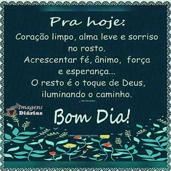 Pra hoje: Coração limpo, alma leve e sorriso no rosto. Acrescentar fé, ânimo, força e esperança...
