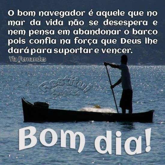 O bom navegador é aquele que no mar da vida não se desespera e nem pensa em abandonar o barco pois confia na força que Deus lhe dará para suportar e vencer.