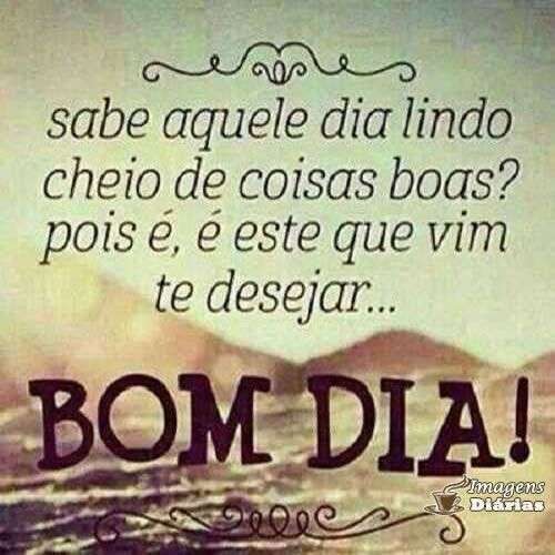 Sabe aquele dia lindo cheio de coisas boas? Pois é, é este que vim te desejar... Bom dia!
