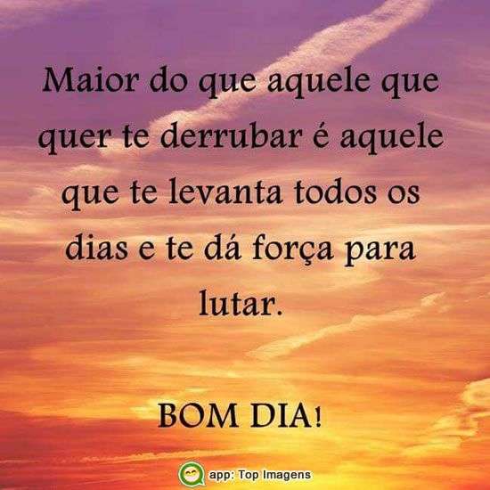 Maior do que aquele que quer te derrubar é aquele que te levanta todos os dias e te da força para lutar.