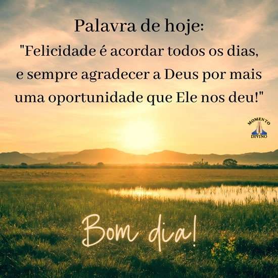 "Felicidade é acordar todos os dias, e sempre agradecer a Deus por mais uma oportunidade que Ele nos deu!"