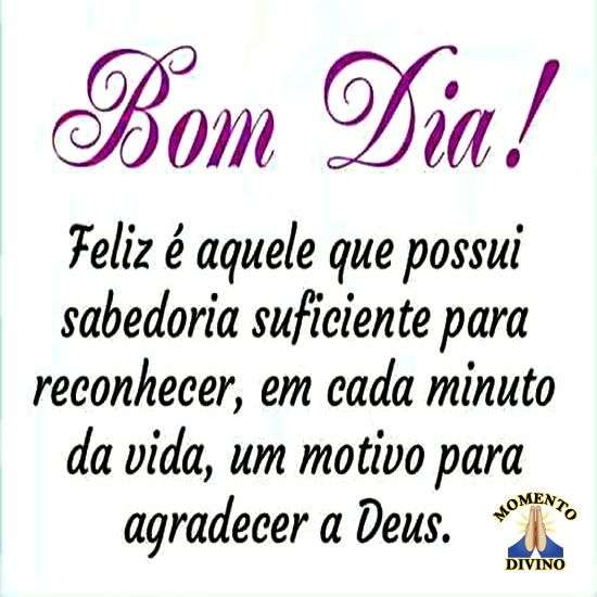 Feliz é aquele que possui sabedoria suficiente para reconhecer, em cada minuto da vida, um motivo para agradecer a Deus.