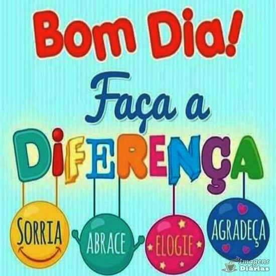 Bom dia! Faça a diferença. Sorria, Abrace, Elogie e Agradeça.