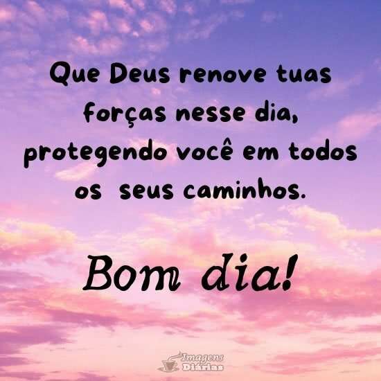 Que Deus renove tuas forças nesse dia, protegendo você em todos os seus caminhos. Bom dia!