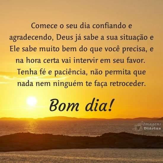Comece o seu dia confiando e agradecendo, Deus já sabe a sua situação e Ele sabe muito bem do que você precisa, e na hora certa vai intervir em seu favor.