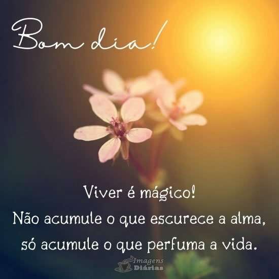 Bom dia! Viver é mágico! Não acumule o que escurece a alma, só acumule o que perfuma a vida.