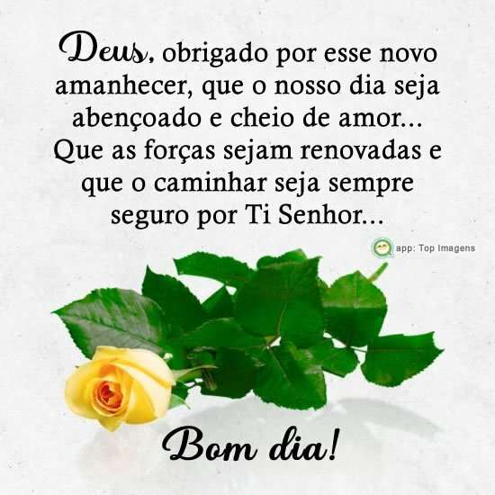 Deus, obrigado por esse novo amanhecer, que o nosso dia seja abençoado e cheio de amor...