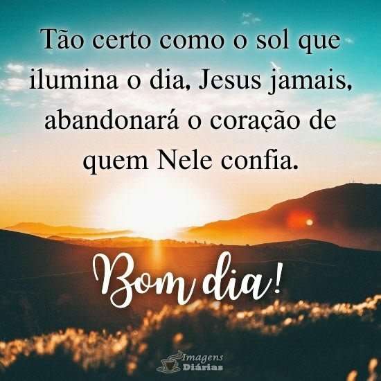 Tão certo como o sol que ilumina o dia, Jesus jamais, abandonará o coração de quem Nele confia.