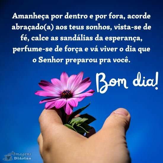 Amanheça por dentro e por fora, acorde abraçado(a) aos teus sonhos, vista-se de fé, calce as sandálias da esperança, perfume-se de força e vá viver o dia que o Senhor preparou pra você.