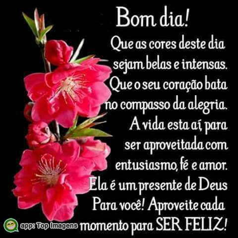 Que o seu coração bata no compasso da alegria. A vida está aí, para ser aproveitada com entusiasmo, fé e amor.