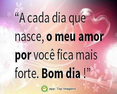 "A cada dia que nasce, o meu amor por você fica mais forte. Bom dia!"
