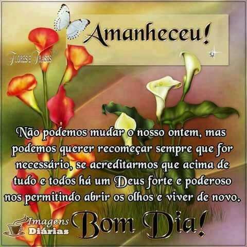 Não podemos mudar o nosso ontem, mas podemos querer recomeçar sempre que for necessário, se acreditarmos que acima de tudo e todos há um Deus forte e poderoso nos permitindo abrir os olhos e viver de novo. Bom dia!