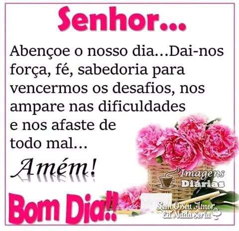 Senhor... abençoe o nosso dia... Dai-nos força, fé, sabedoria para vencermos os desafios, nos ampare nas dificuldades e nos afaste de todo mal... amém!