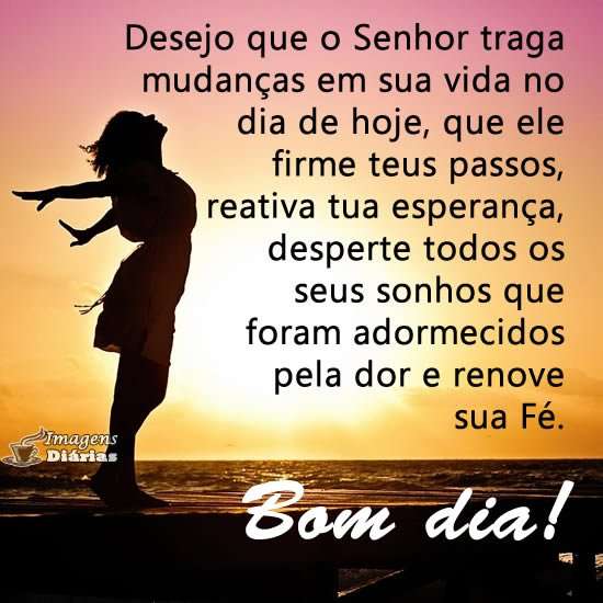 Desejo que o Senhor traga mudanças em sua vida no dia de hoje, que ele firme teus passos, reativa tua esperança, desperte todos os seus sonhos que foram adormecidos pela dor e renove sua Fé.