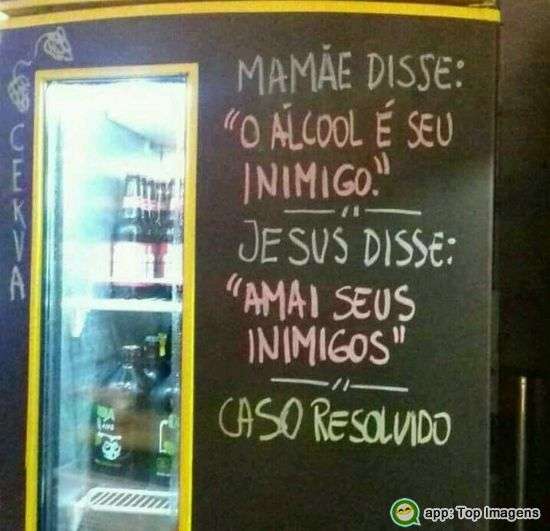 Mamãe disse: "O álcool é seu inimigo." Jesus disse: "Amai seus inimigos" Caso resolvido