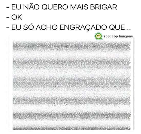 - Eu não quero mais brigar - Ok - Eu só acho engraçado que... (texto gigante)