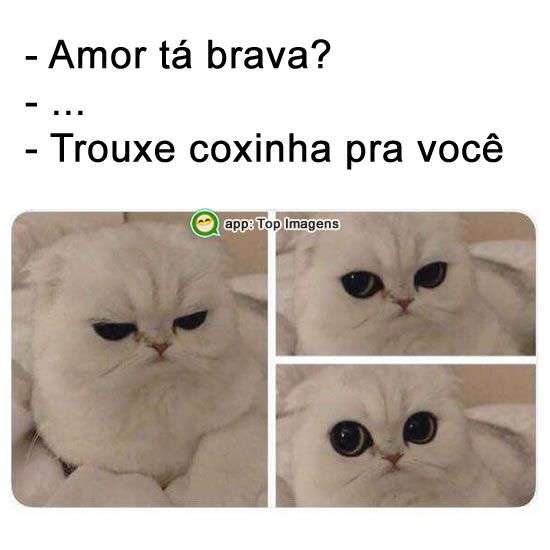 - Amor tá brava? - ... - Trouxe coxinha pra você